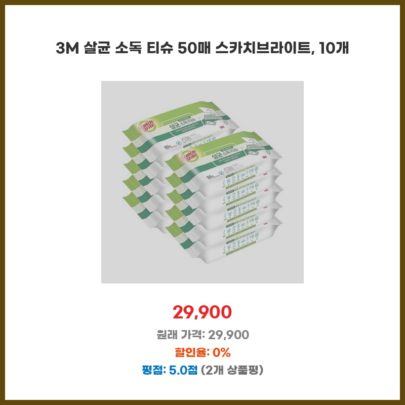 3M 살균 소독 티슈 50매 스카치브라이트, 10개