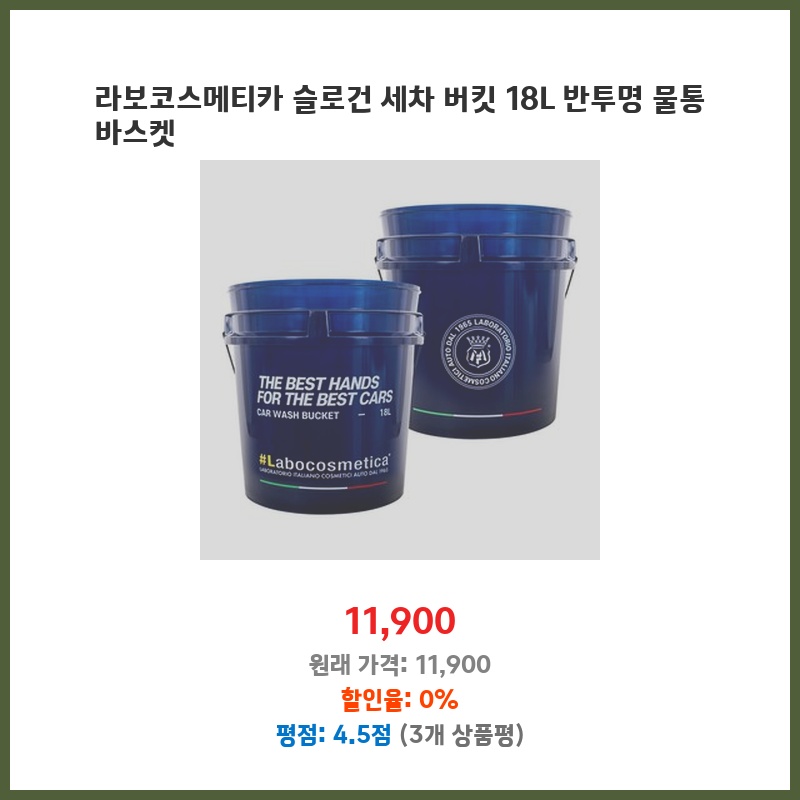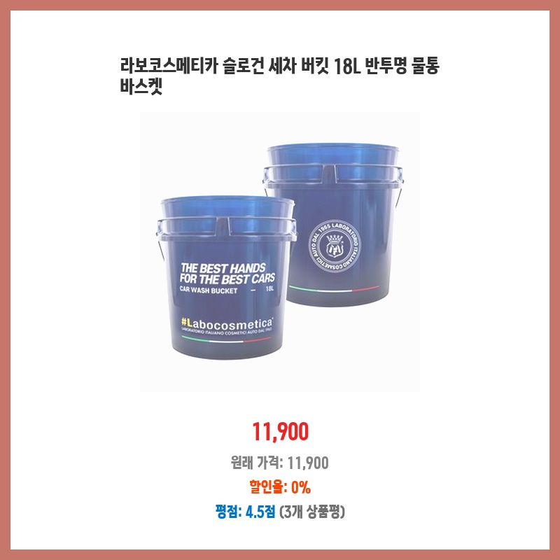 라보코스메티카 슬로건 세차 버킷 18L 반투명 물통 바스켓