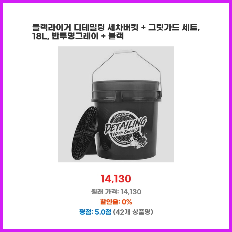 세차 버킷 큼직해서 좋네요! 그릿가드 덕에 스월마크 걱정도 덜고, 디자인도 깔끔! 만족합니다.