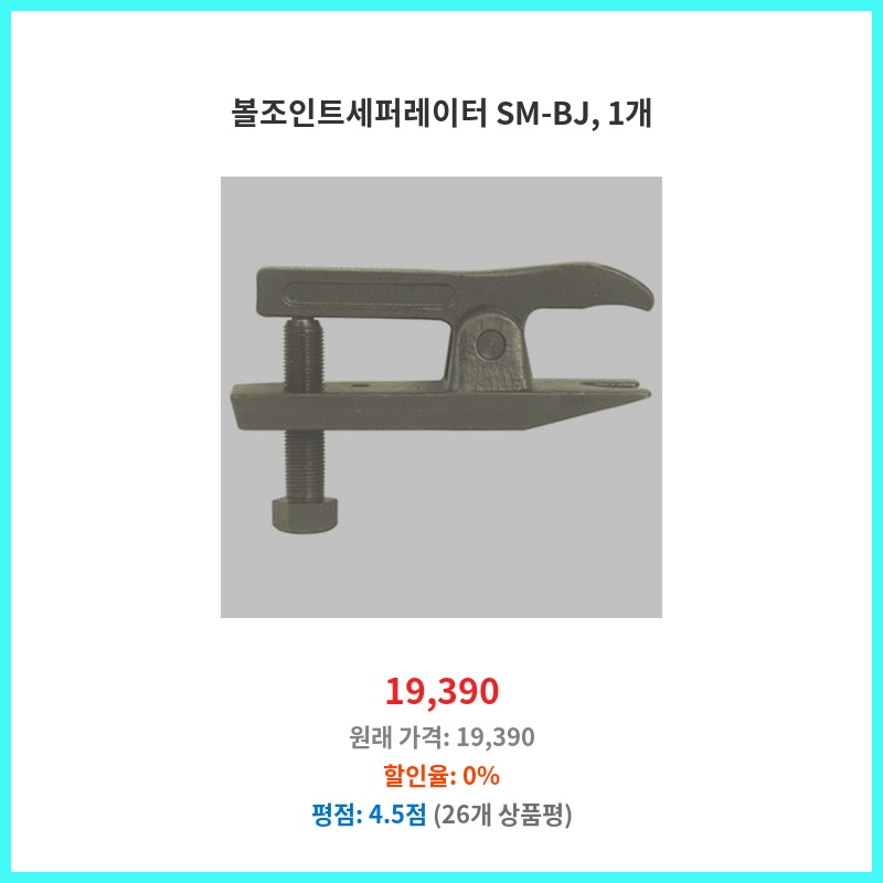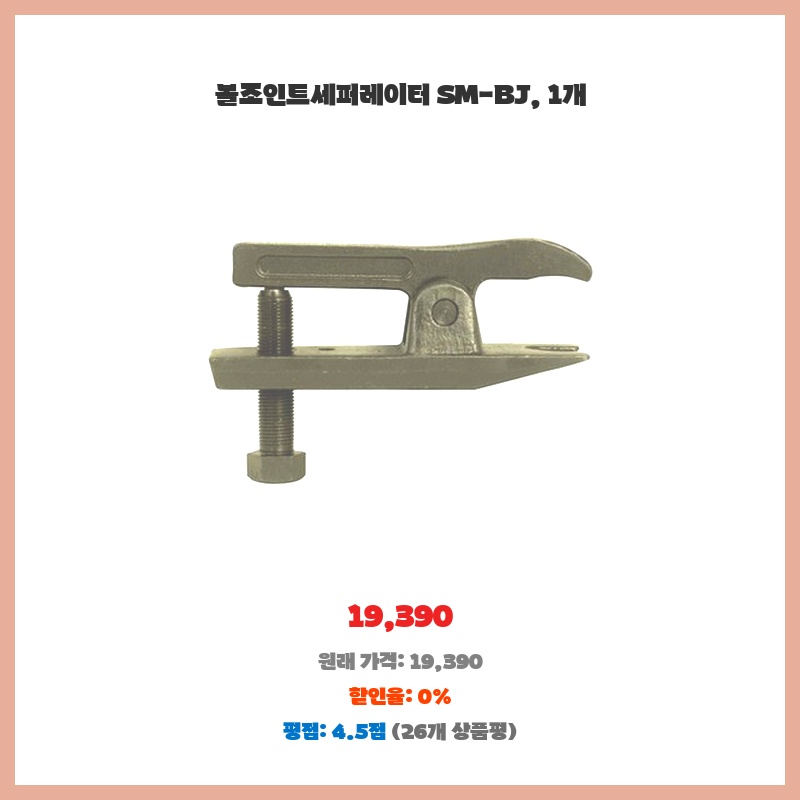 낡은 볼 조인트 분리에 필수라 구매했습니다. SM-BJ는 힘 적게 들이고 안전하게 작업 가능해서 DIY 정비에 적합합니다. 견고한 재질로 내구성도 좋아 보여 오래 사용할 수 있을 것 같습니다.