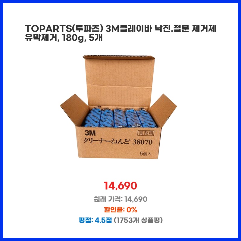 TOPARTS(투파츠) 3M클레이바 낙진.철분 제거제 유막제거, 180g, 5개