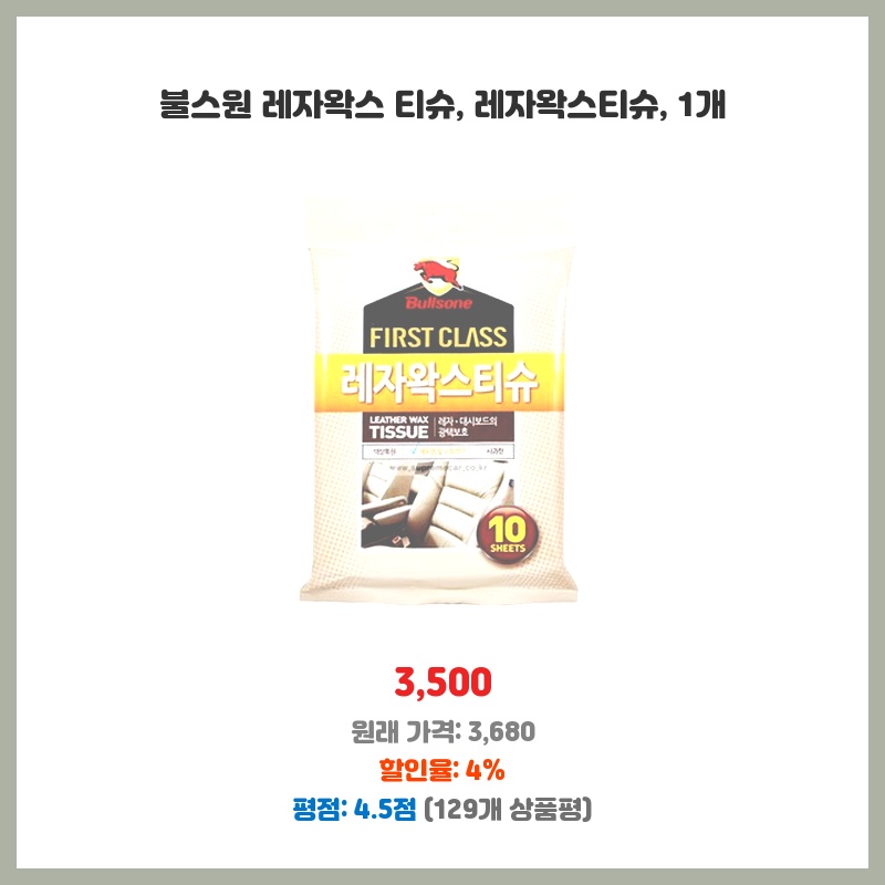 가죽시트 관리 간편해졌어요! 레자왁스 티슈 쓱 닦으니 광택 나고 깨끗해짐! 만족!